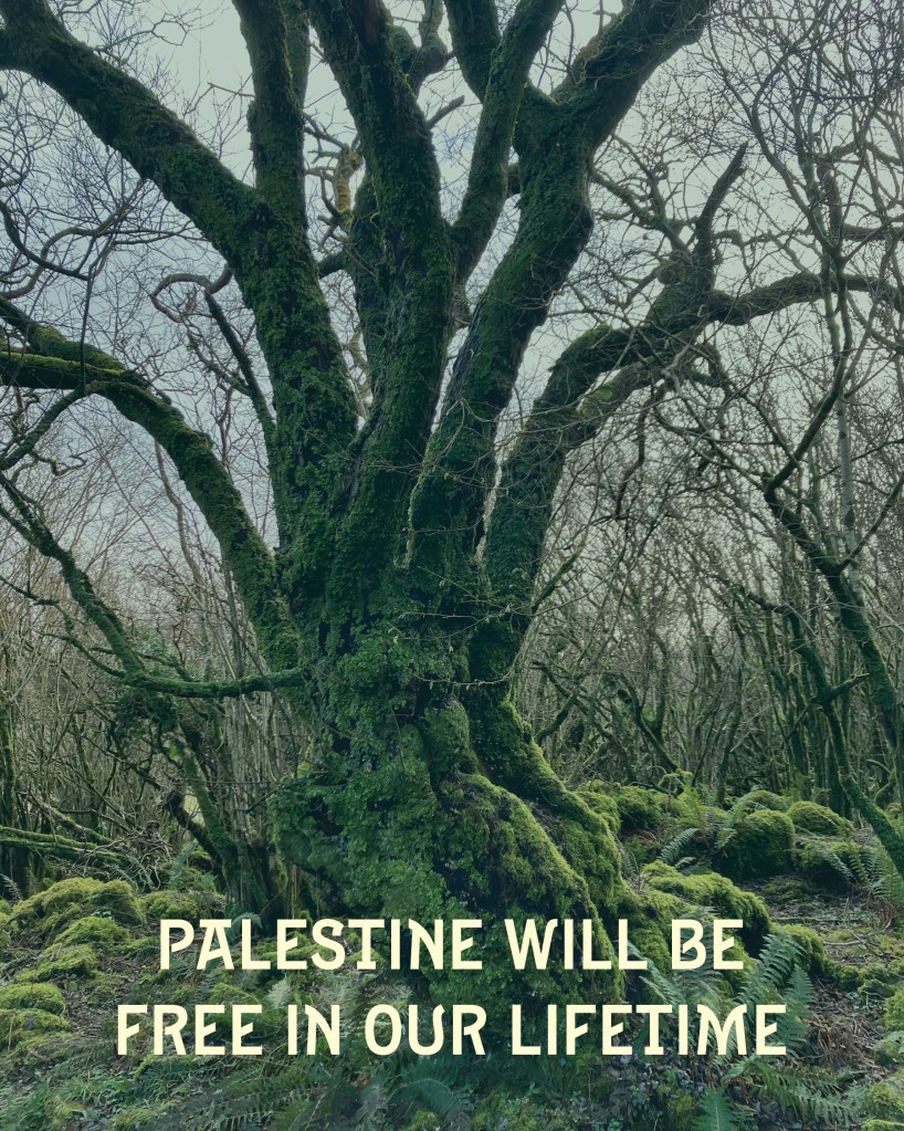 The ancestral roots of the Palestinian people run deep and their collective care for each other is strong, much like a old growth forest. This came to mind as I went to a woodland area in the Burren with a friend in February 2024, there was not much foliage, as it was winter, but the moss and lichen were alive and thriving. Below are photos from that time with text I wrote to encourage solidarity, mutual aid, love, and endurance. This format is inspired by a dear friend of mine, Aster Reem David, who took to making nature photo and type images around liberation movements that they care for.